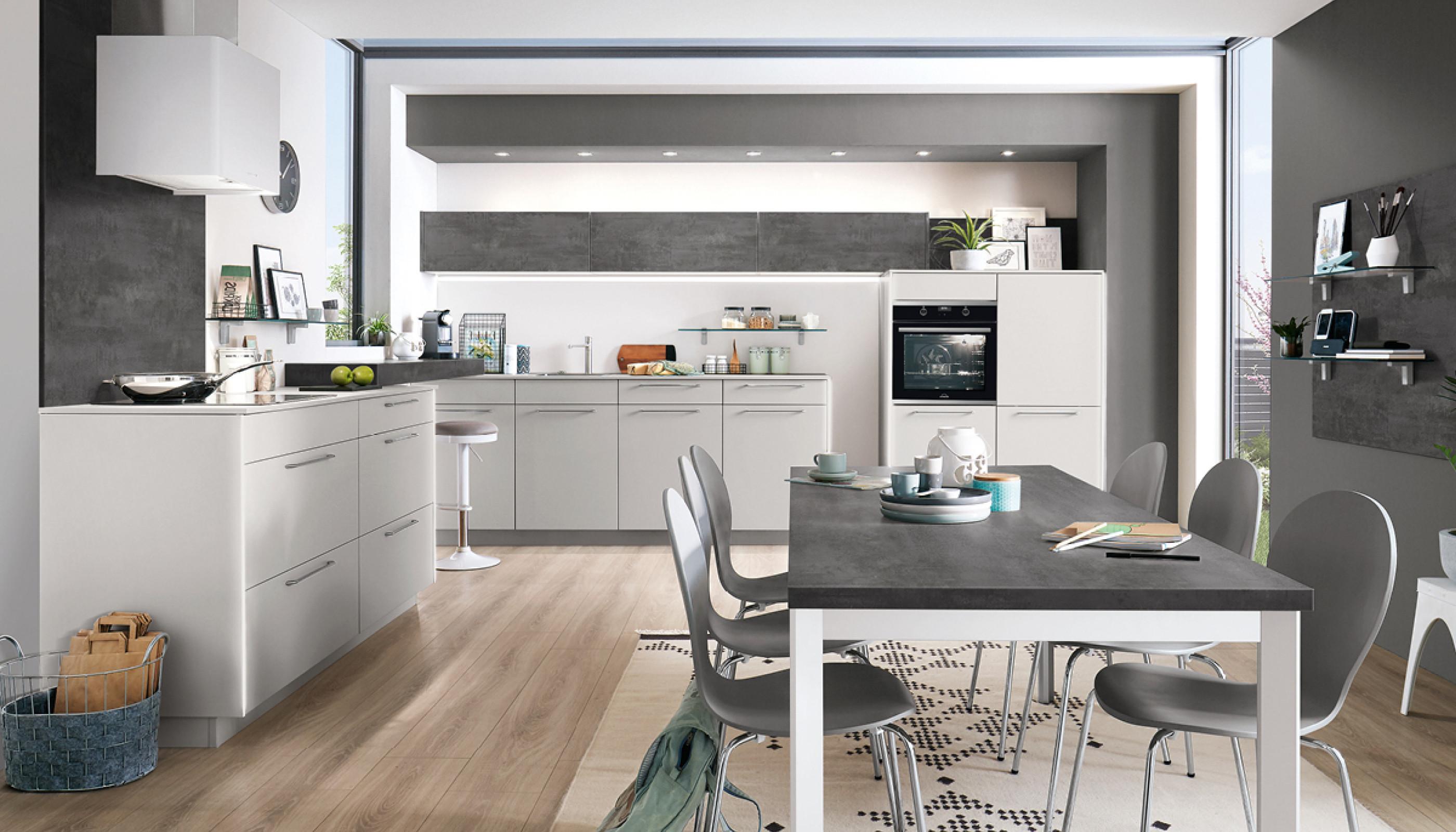 Kuchyňa Ibarra 551 v alpskej bielej matnej je dokonalým spojením čistého dizajnu a praktickosti. Matný povrch v kombinácii s čiernymi spotrebičmi pôsobí moderne a elegantne. Vďaka zabudovaným skrinkám a úložným priestorom je každý detail premyslený tak, aby ste mali všetko po ruke.