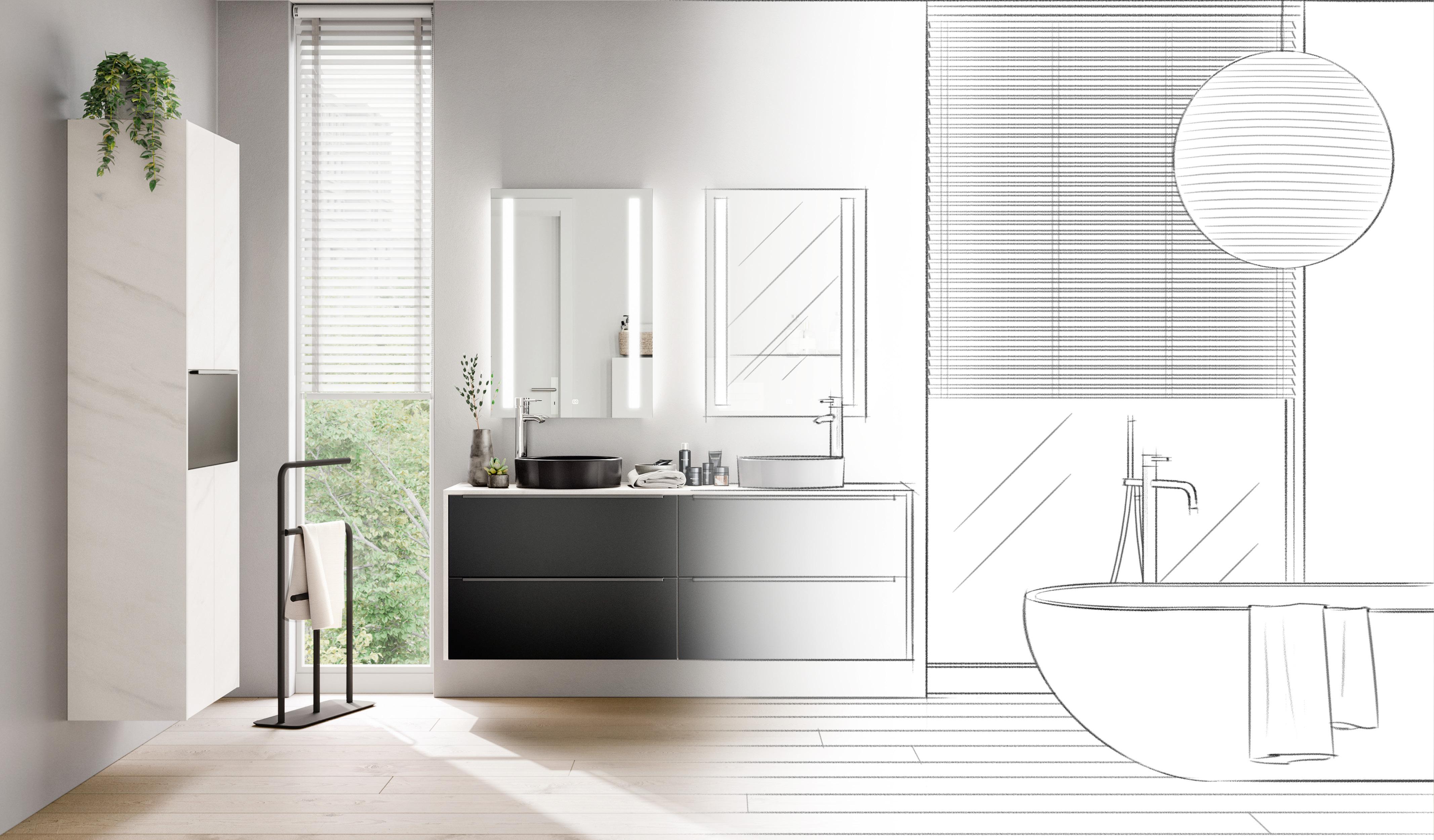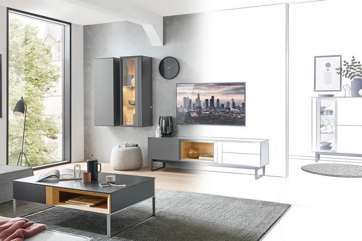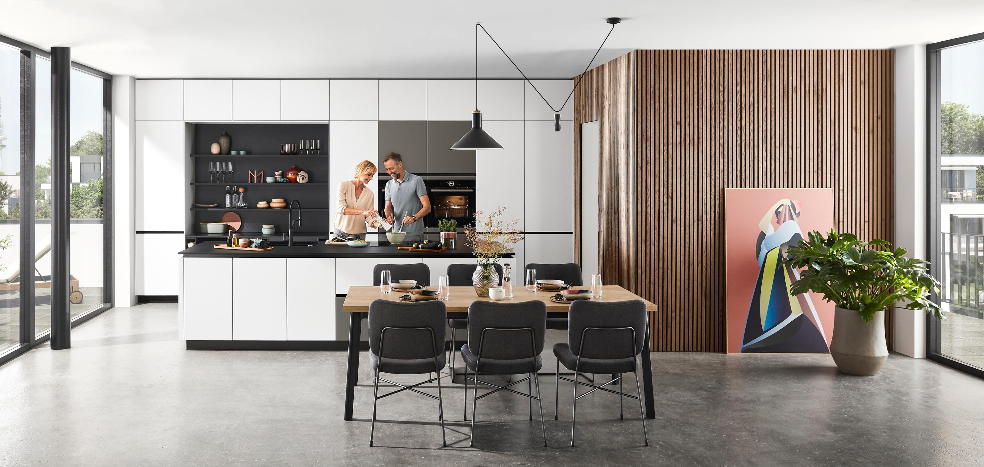 Betónový vzhľad v kombinácii s moderným vybavením vytvára industriálny nádych, ktorý sa hodí do loftových alebo mestských bytov. Čisté línie, tmavé farby a kovové detaily vytvárajú atmosféru, kde sa funkčnosť stretáva s estetikou. Barové stoličky a veľké okná dodávajú priestoru vzdušnosť a otvorenosť.