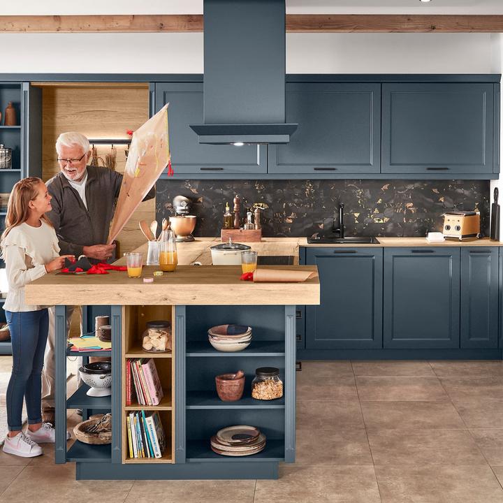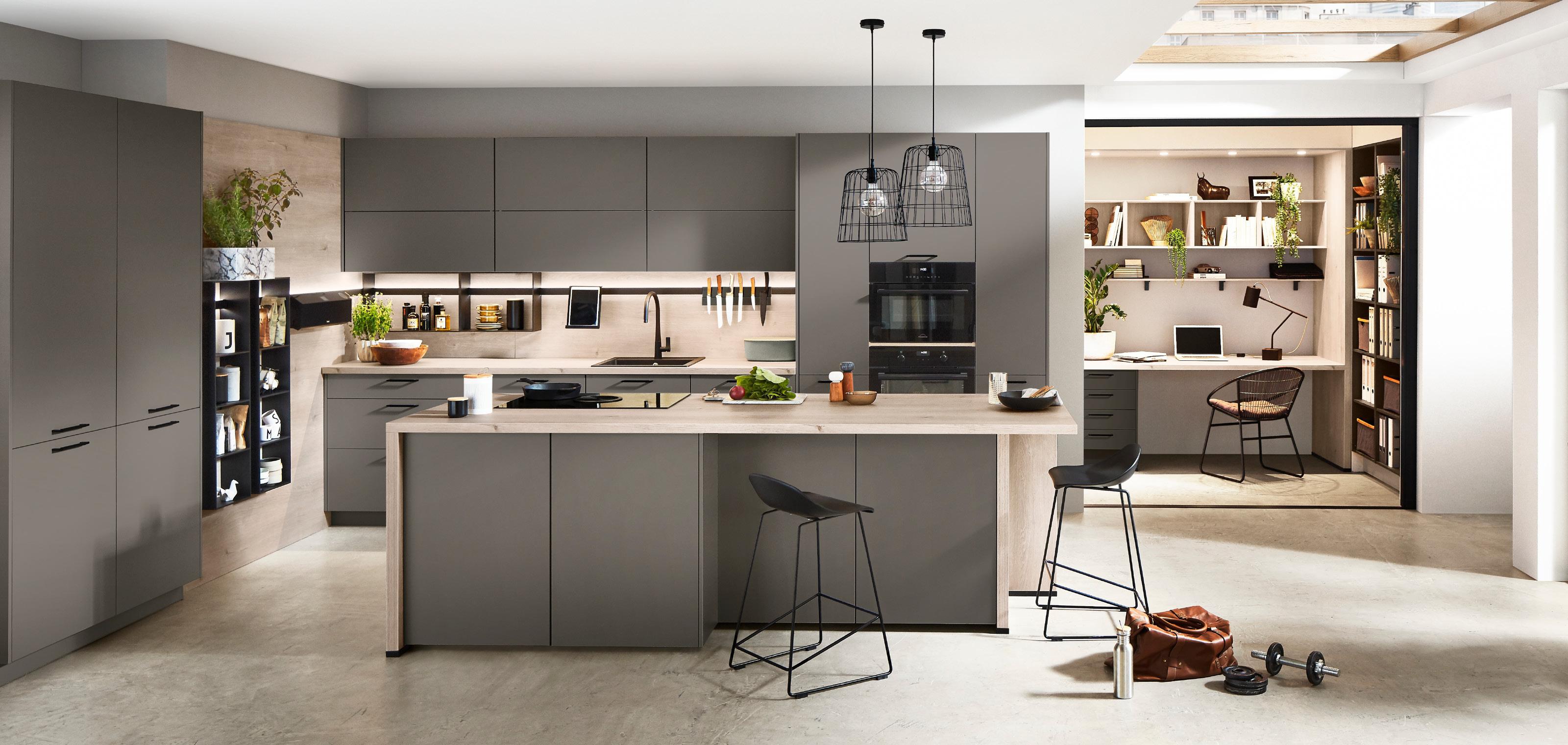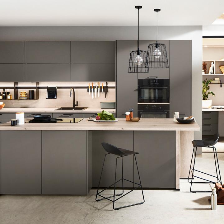 V kombinácii s prírodnými drevenými prvkami dostáva táto kuchyňa príjemný teplý nádych. Tmavé betónové čelá sú elegantne doplnené drevenými prvkami, ktoré vytvárajú pocit útulnosti. Je to skvelá voľba pre tých, ktorí chcú modernú kuchyňu s nádychom prírody a tepla domova.