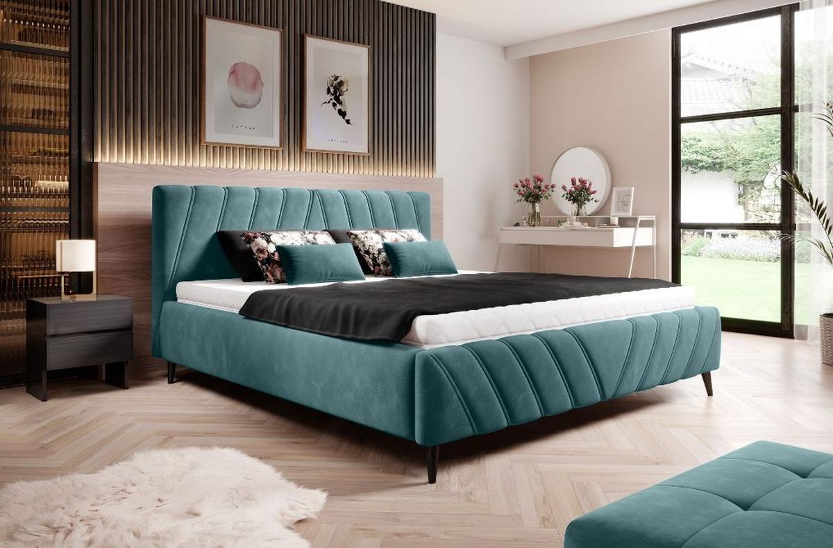 Čalúnená posteľ Melli s roštom 180x200 cm - čierna/tyrkysová, Design, drevo/textil (180/200cm)