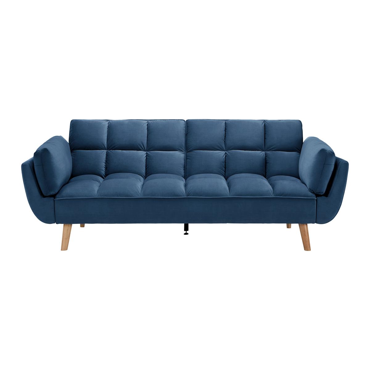 Rozkladacia pohovka CORA, modrý zamat, max. 360 kg - modrá/prírodná farba, Modern, drevo/textil (214/92/81cm) - Bessagi Home
