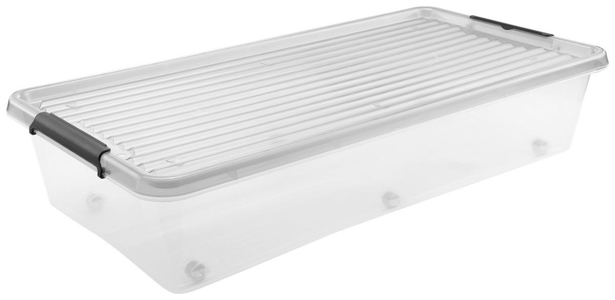 S objemom približne 35 litrov ponúka dostatok úložného priestoru na oblečenie, posteľnú bielizeň alebo hračky. Nádoba na kolieskach je priehľadná. Vďaka integrovaným kolieskam sa dá úložný priestor pod posteľ RITA ľahko vytiahnuť spod postele. Odnímateľné veko chráni obsah pred prachom a nečistotami.