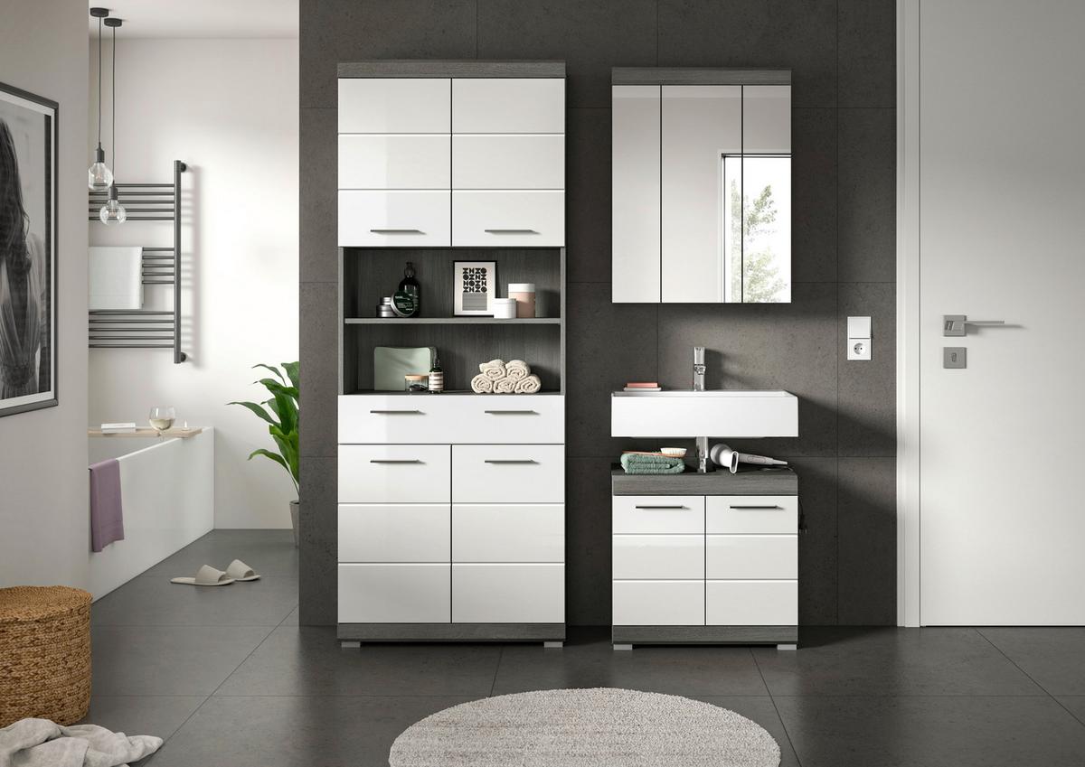 Kúpeľňa Scout, 3-dielna, biela - biela s vysokým leskom/chrómová, Modern, kompozitné drevo/plast (134cm) - MID.YOU