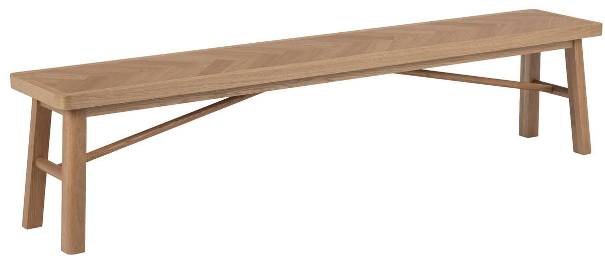 Drevená lavica GALWAY BENCH je dokonalým doplnkom k rovnomennému jedálenskému stolu. Vyrobená bola v kombinácii materiálov drevotriesky a dubovej dýhy. Veľmi príťažlivý je vzor rybej kosti na sedadle, zaoblené hrany a nohy v tvare A.