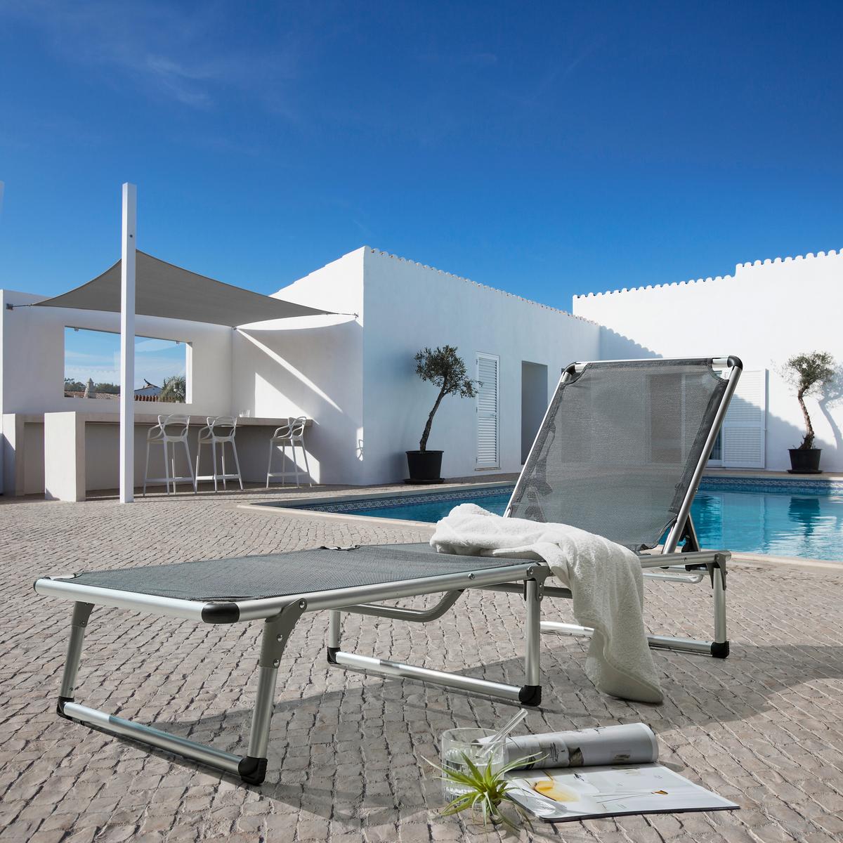 Toto svieže záhradné lehátko sa určite stane vaším novým obľúbeným odpočinkovým miestom pri bazéne alebo v záhrade! S rozmermi cca 188 x 56 x 25 cm (Š/V/H) má pevný hliníkový rám a textilný výplet antracitovej farby, ktorý je odolný a ľahko sa udržiava.