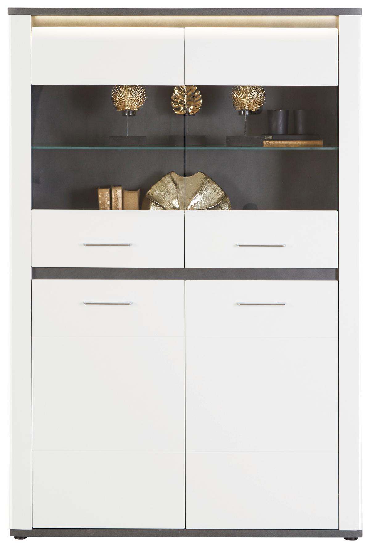Vitrína zo série ALASSIO v bielom a grafitovom dekore
