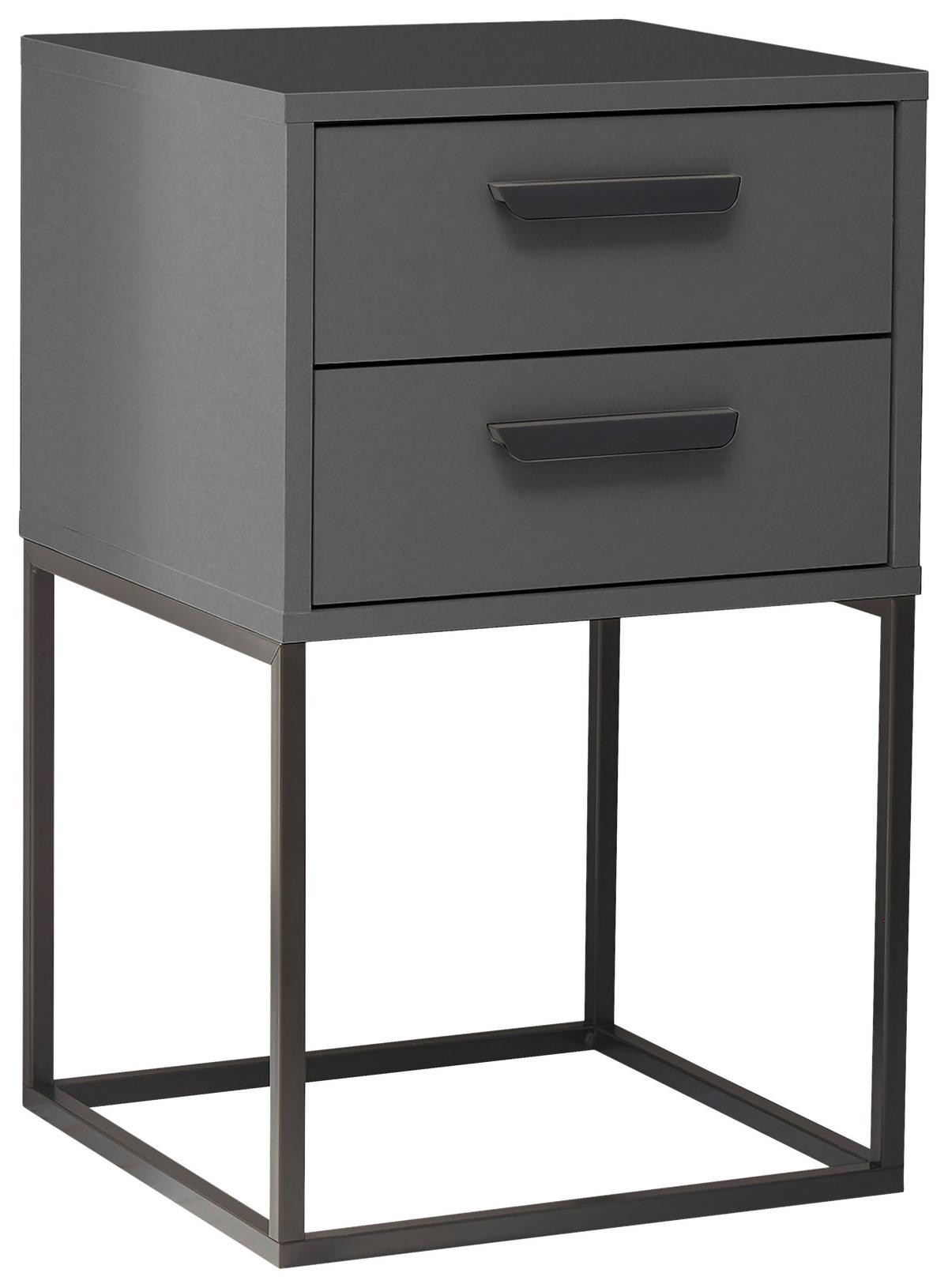Nočný stolík SUNA 2 zásuvky dekor grafit - čierna/grafitová, Modern, kov/kompozitné drevo (40/65/38,5cm)