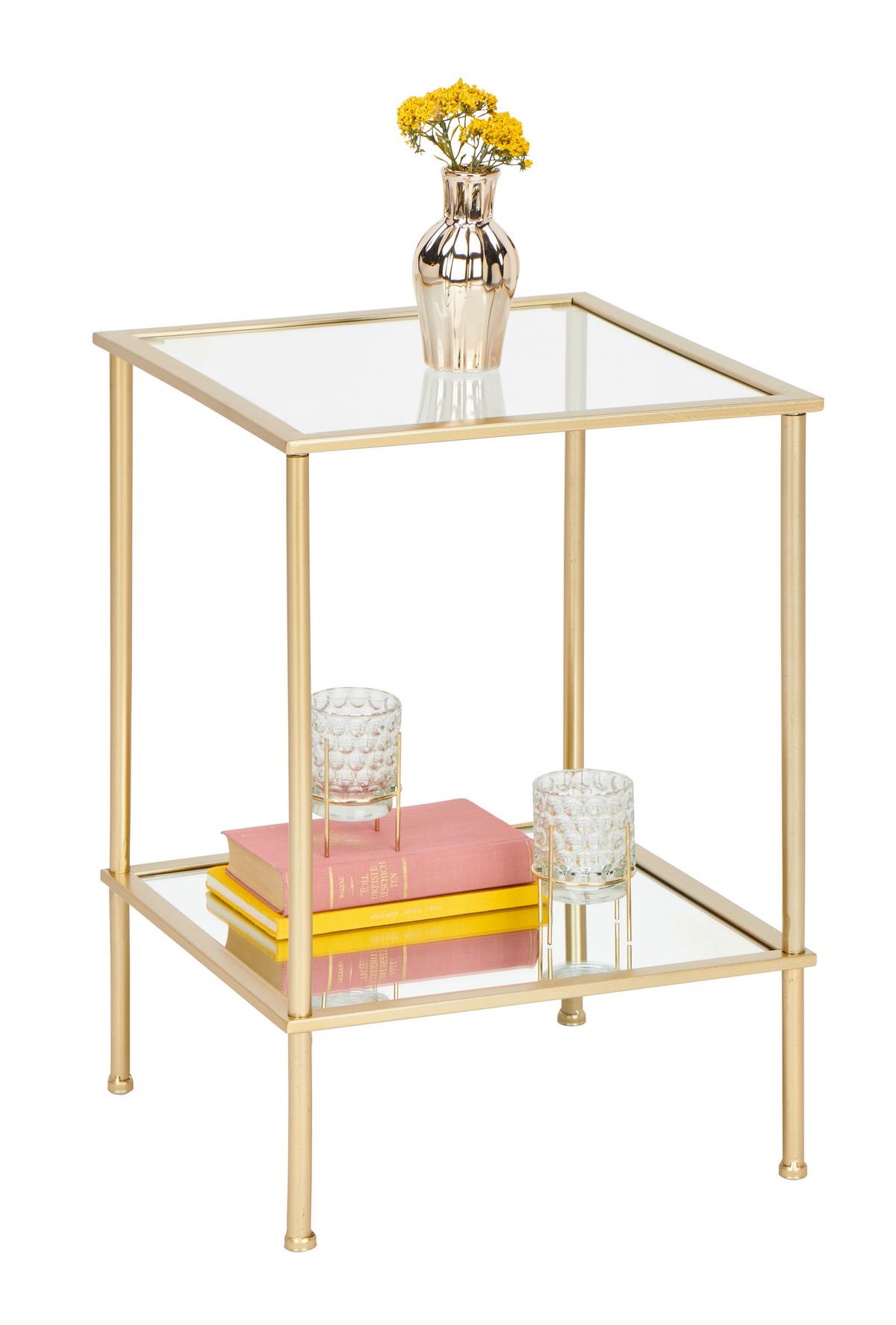 Príručný stolík FARO 2 - zlatá, Basics, kov/sklo (39/39/55cm)