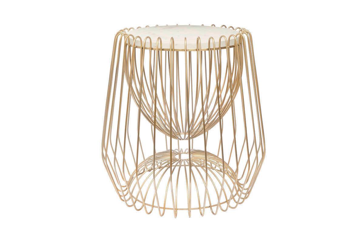 Príručný stolík mramor, biela/mosadzná - biela/mosadzná, Basics, kov/kameň (50/50/51cm) - Kayoom