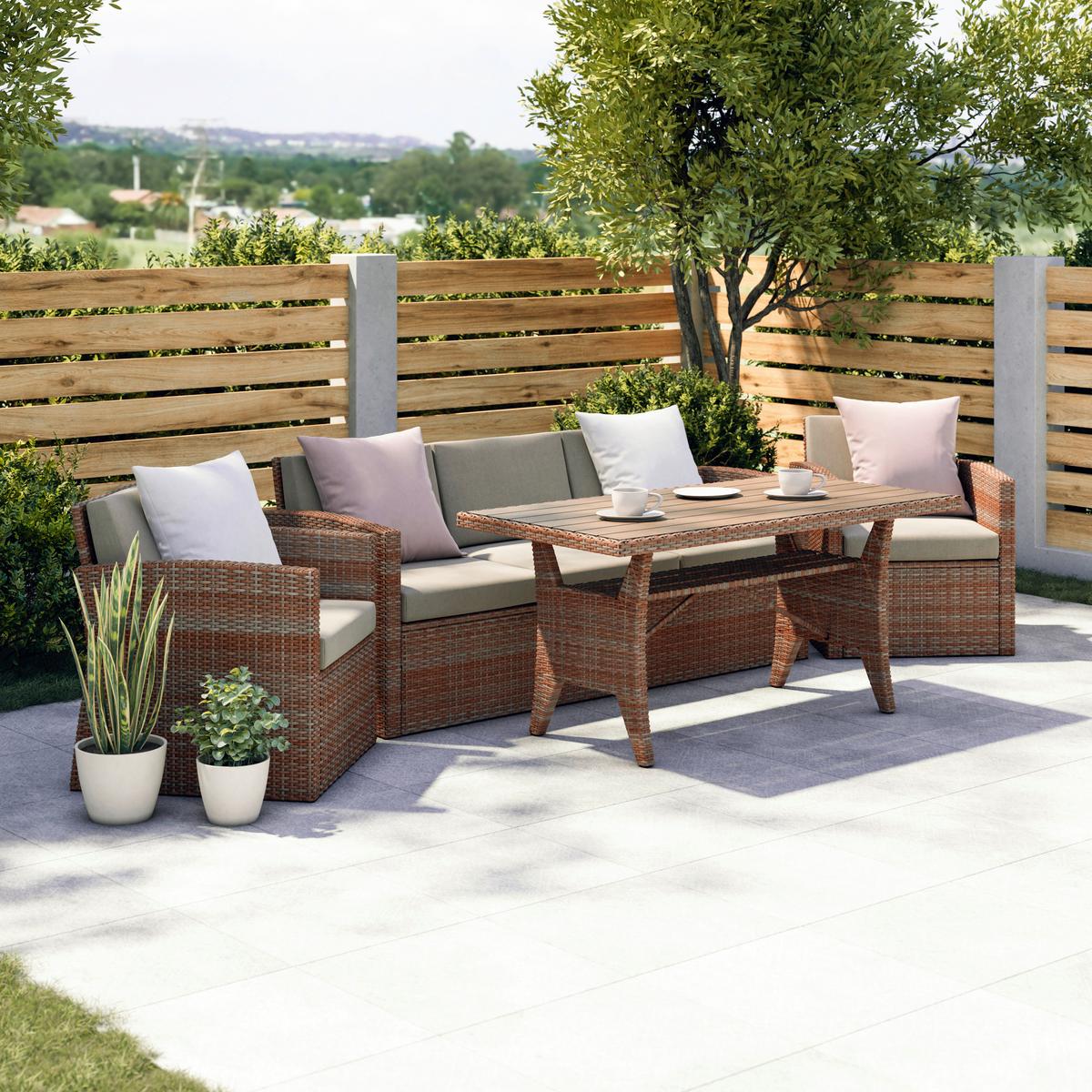 Ratanová záhradná zostava SELINE - hnedá/svetlohnedá, Natur, kov/textil (130/76,5/71,5cm) - Mömax