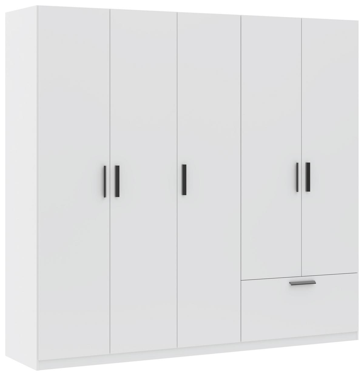 Moderná biela šatníková skriňa s čiernymi úchytkami