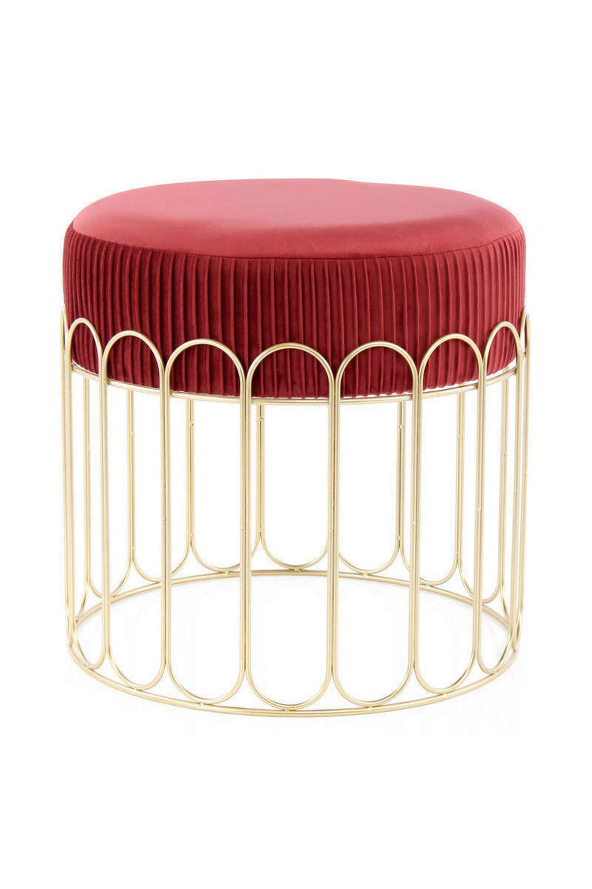 Taburet zlatá/bordeaux - zlatá/bordová, Basics, kov/textil (40/39/40cm)