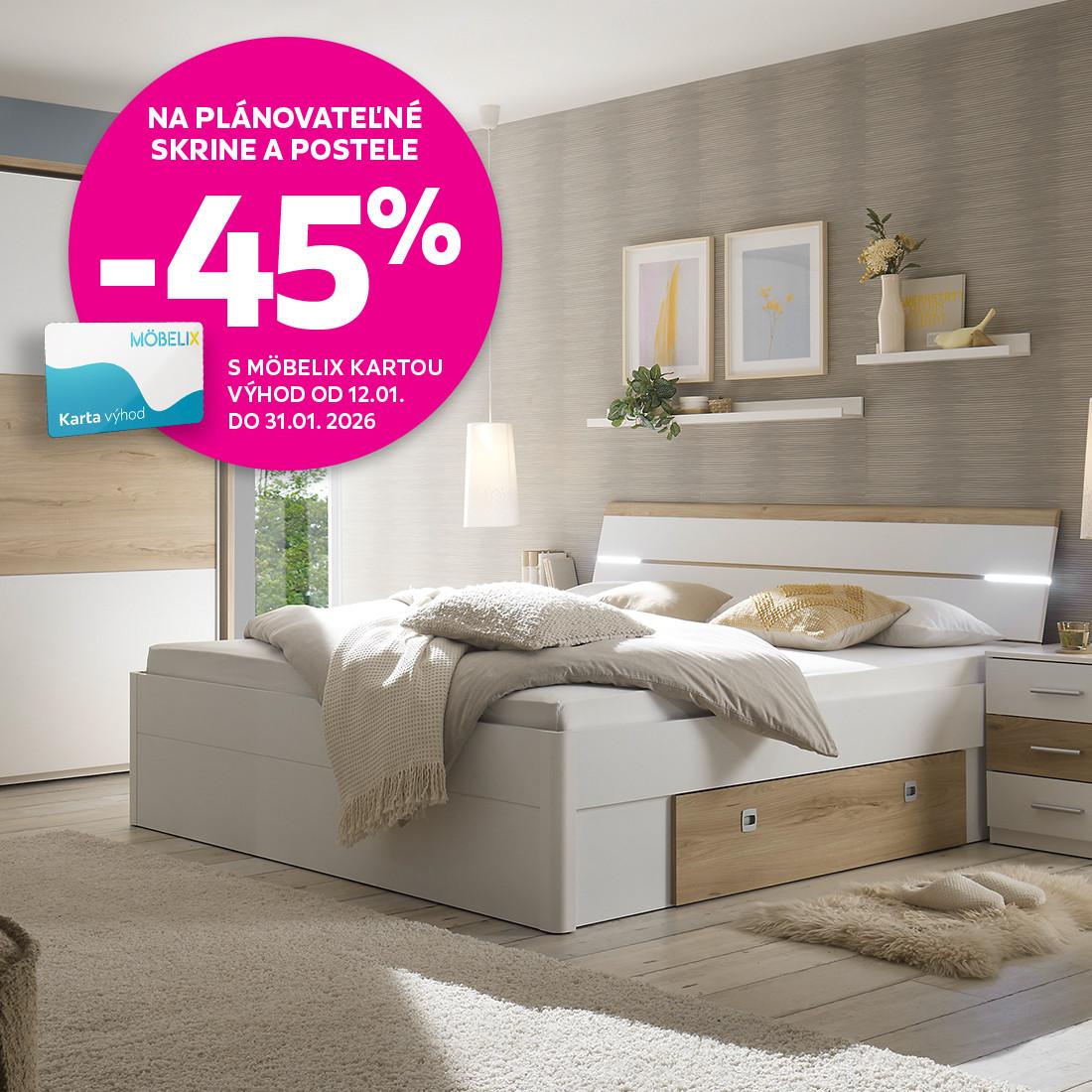 Ak máte v svojej spálni málo miesta, vhodné sú najmä modely s posuvnými dverami, ktoré sa dajú otvárať s úsporou miesta. Aj nadstavná skrinka dokáže zabezpečiť oveľa viac úložného priestoru. Najlepšie bude, ak do nej uložíte veci, ktoré často nepotrebujete, ako sú hrubé lyžiarske pulóvre alebo osušky na leto.